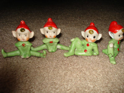 Title (ebay affiliate link): 4 Antique Christmas Elves Elf Japan ceramic super cute
