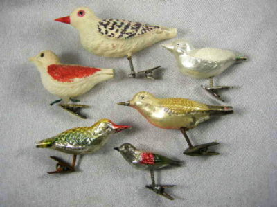 Vintage (6 Six) Clip-On Bird Christmas Ornaments