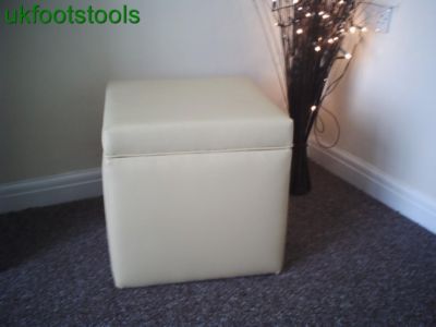 THE CUBE STORAGE FOOTSTOOL IN FAUX CREAM LEATHER