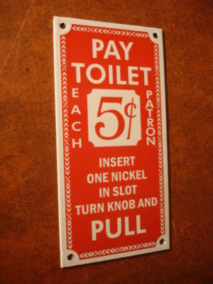 5 CENT SUBWAY BUS DEPOT PAY TOILET PORCELAIN SIGN ORIG