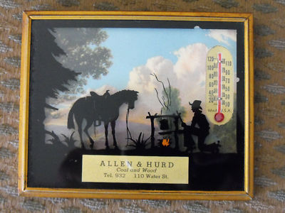 ADVERTISING REVERSE PAINTING SILHOUETTE COWBOY HORSE