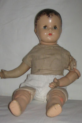 Title (ebay affiliate link): Antique Composition Baby Doll 17" Blue Open & Close Eye