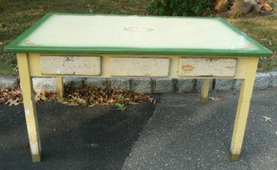 Title (ebay affiliate link): LG. VINTAGE ENAMEL METAL TOP BAKERS TABLE, 40" x 60"