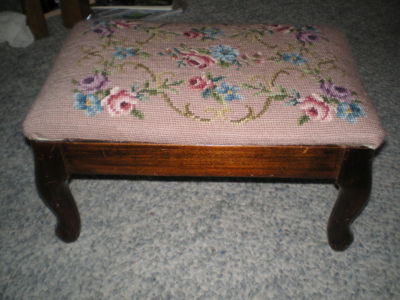 Vintage Footstool, Floral Needlepoint Top WOW!!