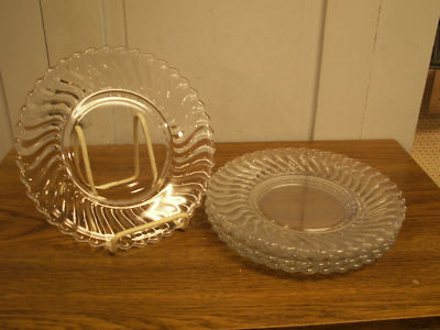 VINTAGE CLEAR GLASS SWIRL PLATES (6)