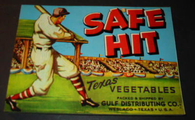 100 Old 1950's SAFE HIT Texas Vege LABELS - BASEBALL