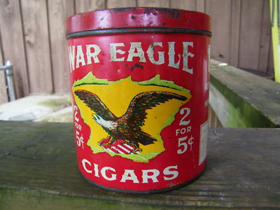 Vintage WAR EAGLE Cigar tin can tobacco advertising NR
