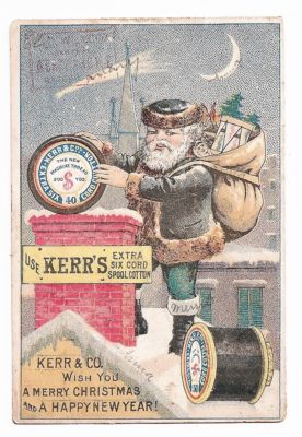 Title (ebay affiliate link): 1800's KERR'S THREAD*SANTA CLAUS GREEN SUIT*TRADE CARD*