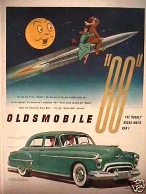 Title (ebay affiliate link): 1951 OLDSMOBILE SEDAN 88 ROCKET ad MAN IN THE MOON GM