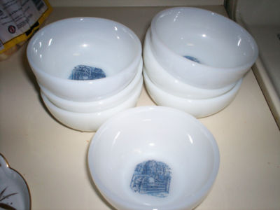 7 Vintage Currier Ives White MIlk Glass Bowls