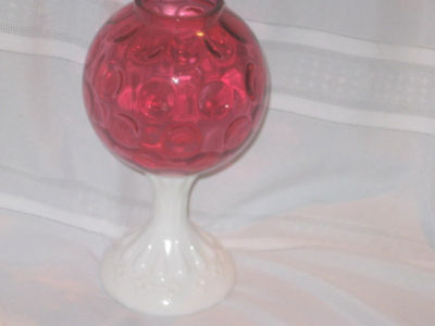 Vintage Fenton Ruby + milkglass Ivy Ball Vase C 1955