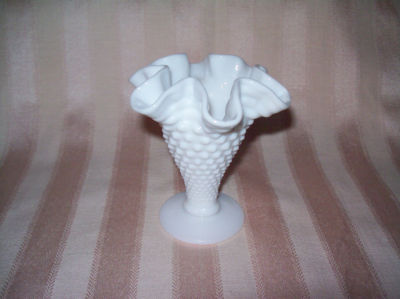 Small Fenton White Milk Glass Hobnail Ruffled Edge Vase