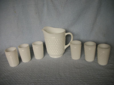 Vtg Milk White Glass Pitcher +6 Tumblers Anchor Hocking
