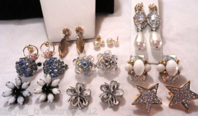 Vintage Earring Lot~RHINESTONE~MILK GLASS~AB+