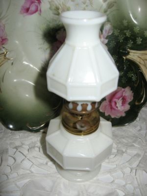 SWEET VINTAGE Miniature MILK GLASS Oil Lamp