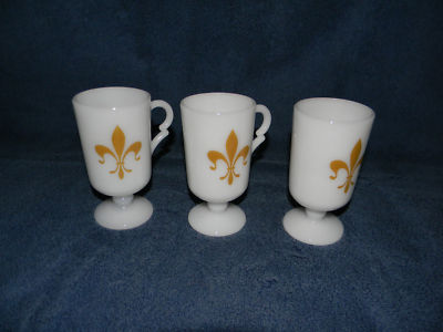 Vintage Milk Glass Lot of 3 Cups Fleur De Lis Design