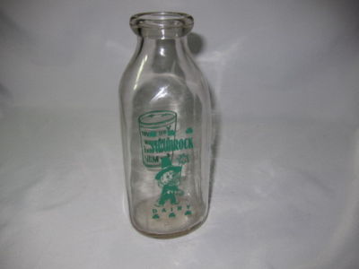 VINTAGE ALL GLASS SHAMROCK LEPRECHAUN MILK BOTTLE