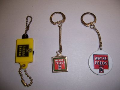 3 Vintage Wayne Feeds Keychains