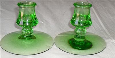 VINTAGE DEPRESSION GLASS GREEN CANDLE HOLDERS