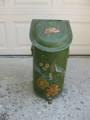 Antique Painted Decopage Coal Bin