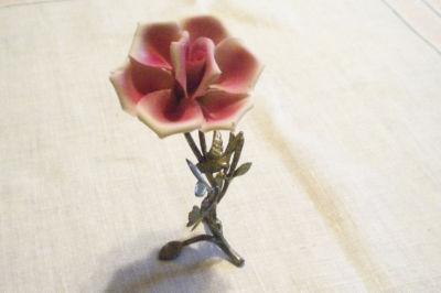 Title (ebay affiliate link): Beautiful Capodimonte Pink Porcelain Rose On Metal Stem