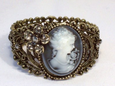 Title (ebay affiliate link): ANTIQUE INSPIRED CAMEO BRACELET WITH CRYSTALS GOLD TONE
