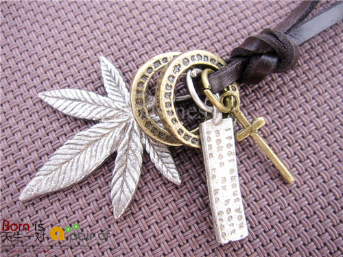 New Fashion Leather Necklace Antique Leaf Cross Pendant