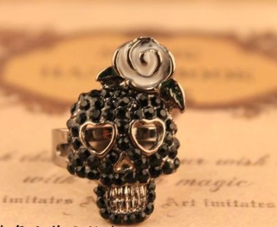 Title (ebay affiliate link): Vintage Retro Antique White Rose Skull Open Rings WFR61