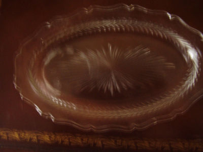 1930s 40s Depression Jeannette Glass Sunburst Oval Tray