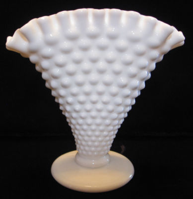 Fenton White Pressed Milk Glass Hobnail Fan Vase 5 3/4"