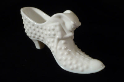 FENTON MILK GLASS HOBNAIL CAT IN SHOE PIN CUSHION