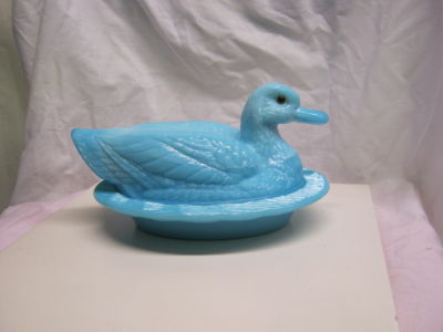 WESTMORELAND BLUE MILK GLASS DUCK ON A NEST