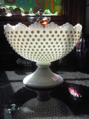 FENTON Art Milk Glass HOBNAIL OVAL Footed Bowl Vintage