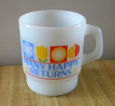 1982 McDonald's Milk Glass Cup Mug "Many Happy Returns"