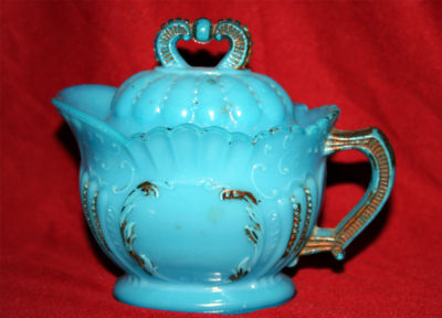 WESTMORELAND SPECIALTY BLUE MILK GLASS MUSTARD JAR