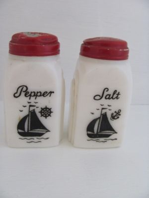 McKee Milk Glass Sailboats Salt & Pepper Shakers
