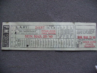 LOS ANGELES RAILWAY CO 1940 TICKET