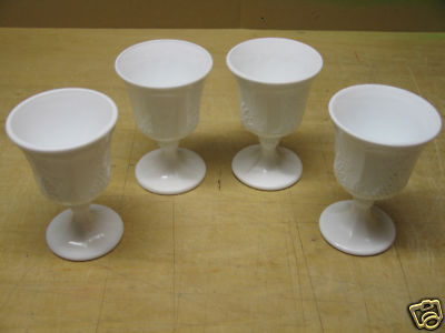 Set Of 4 Westmoreland Milk Glass Goblets Paneled Grape