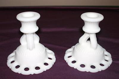 Vintage WESTMORELAND Milk Glass DORIC Candlesticks Pair