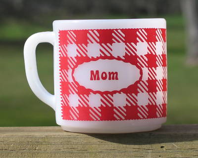 Vintage Federal Milk Glass Gingham "Mom" Mug Mom