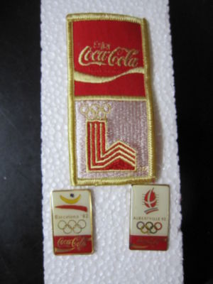 CocaCola 1992 Olympic Patch and 2 Pins