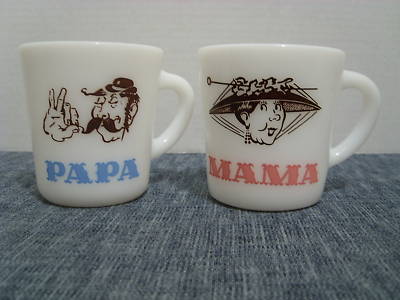 SET OF TWO HAZEL ATLAS MILK GLASS MAMA AND PAPA MUGS