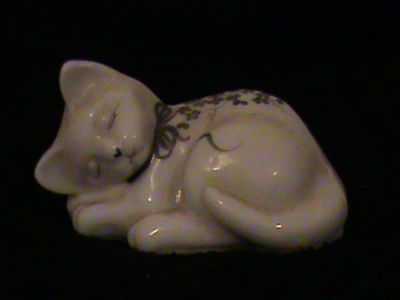 Fenton 2" x 3" sleeping cat kitten milk glass