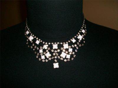 Gorgeous Rhinestone & Milk Glass Vintage Necklace (15")