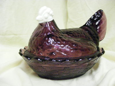 Fenton Glass Amethyst & Milk Glass Chicken Hen On Nest