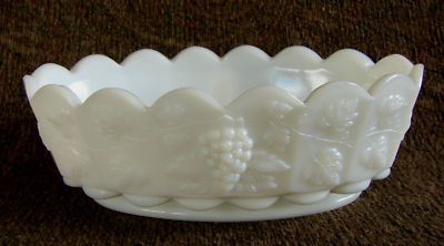 Westmoreland Paneled Grape Milk Glass Oval Bowl