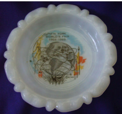NEW YORK WORLDS FAIR 64-65 MILK GLASS ASHTRAY BEAUTIFUL
