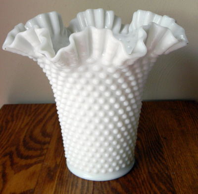 MILK GLASS FENTON HOBNAIL CRIMPED EDGE VASE UNMARKED
