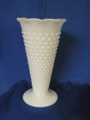 Milk Glass Hobnail Ruffled Vase 9 1/2"