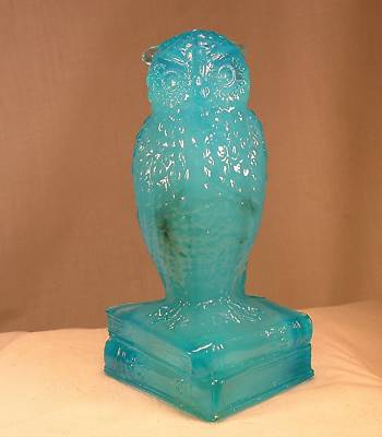 Degenhart Glass Owl Blue Milk Opalescent Slag Color